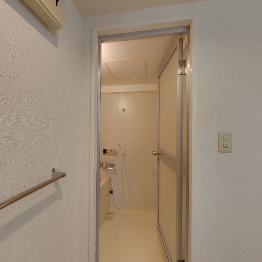 • 洗面・脱衣所が近接(確度90%):浴室ドアの外に洗面台と脱衣スペースが見える。