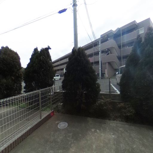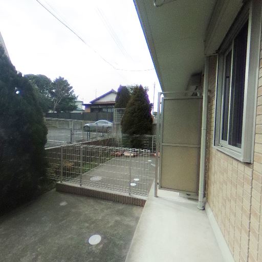 1階専用庭・テラスあり(確度86%):コンクリート敷きの専用庭(または広めのテラス)があり、フェンスで区切られている。植栽や物置を置ける程度の広さが見える。