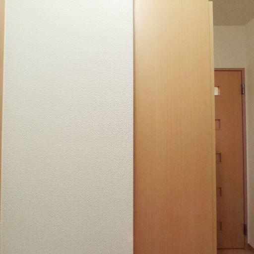玄関収納の存在(確度70%):木目の大きな扉があり、シューズボックスまたは収納と推測。