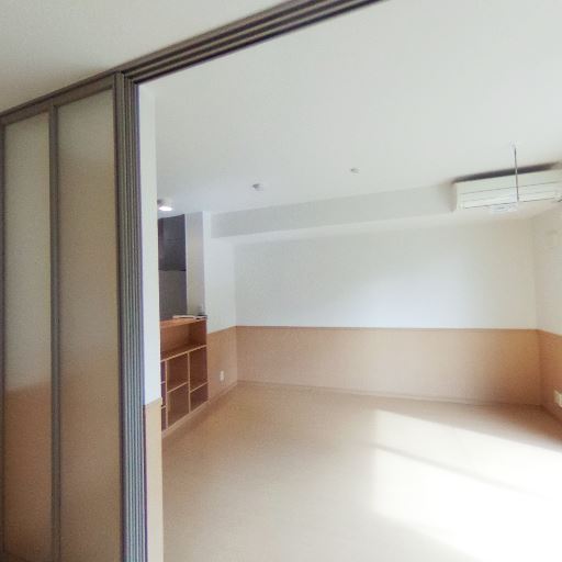 可動間仕切りで2空間に分けられる(確度73%):大きな開口部とレールがあり、引き戸で仕切れるように見える。