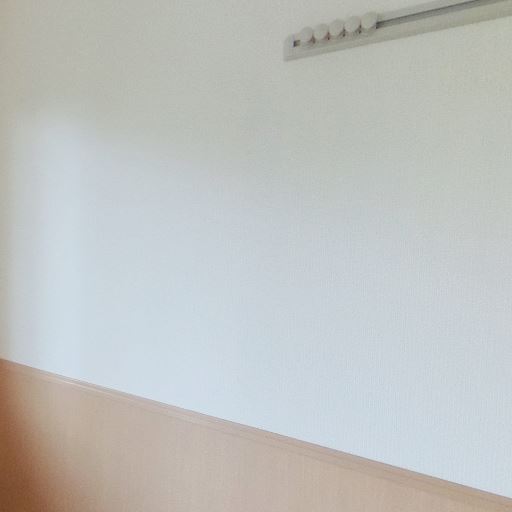 室内物干し(ピクチャーレール風)あり(確度72%):壁上部にフック付きのレールがあり、ハンガー掛けや小物吊り下げが可能。