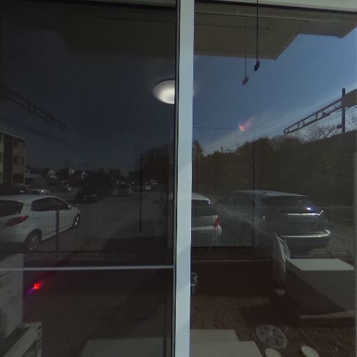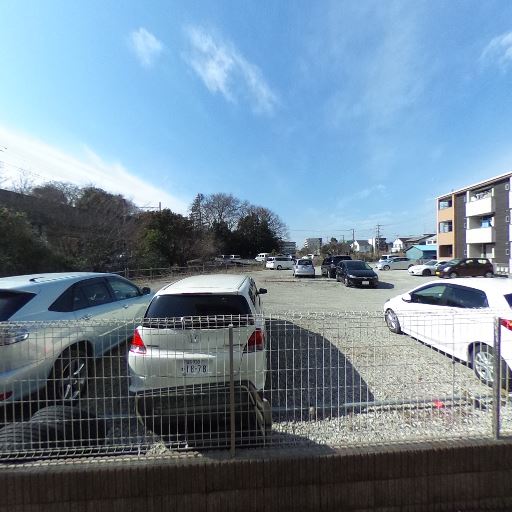 眺望・前面環境(確度82%):敷地前は駐車場で開けており、建物の圧迫感が少ない。車の出入りがある環境。