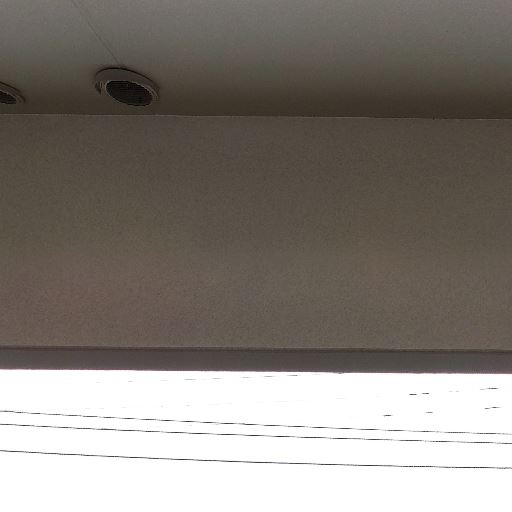 天井・手すりの状態(確度70%):庇天井や手すりの表面は概ねきれいで大きな劣化やサビは見当たらない。