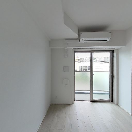 バルコニー付きの掃き出し窓(確度90%):床から天井近くまでの大きな引き違い窓があり、外には手すりが見えるためバルコニーがある。採光も期待できる。