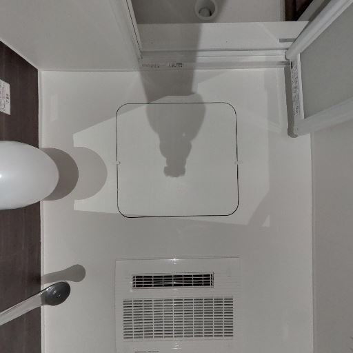 天井設備とダウンライト(確度72%):天井にダウンライト2灯と角型設備(恐らく換気関連)が見える。