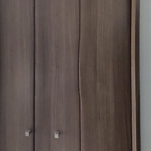 収納スペースあり(確度78%):木目の折れ戸のクローゼットがあり、幅もそこそこある。