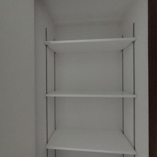可動棚の収納スペース(確度83%):玄関近くに3段の可動棚があり、日用品や靴のストックなどを整理しやすそう。