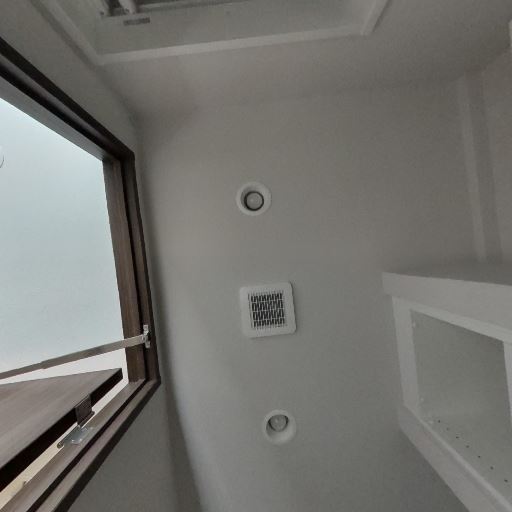 換気設備が複数あり湿気対策が期待できる(確度82%):天井に換気口とダウンライト、窓もあり自然換気が可能。