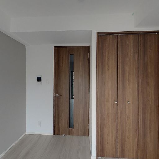 アクセントクロスのある壁面(確度82%):一面だけグレー系のアクセントクロスが貼られている。