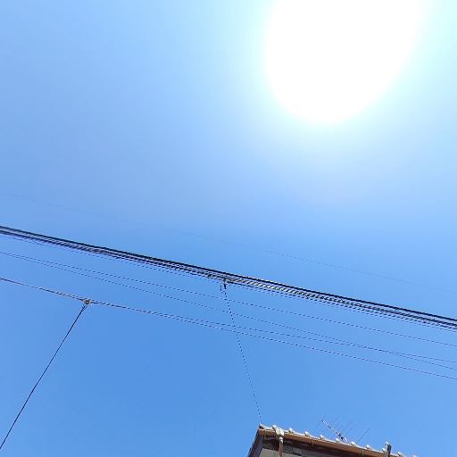 • 南向きで日当たり良好の可能性(確度78%):快晴時に建物外壁と地面が強く日光を受けており、遮る高層建物が見当たらない。