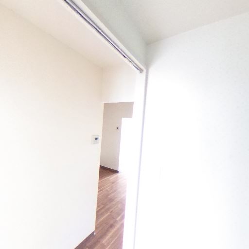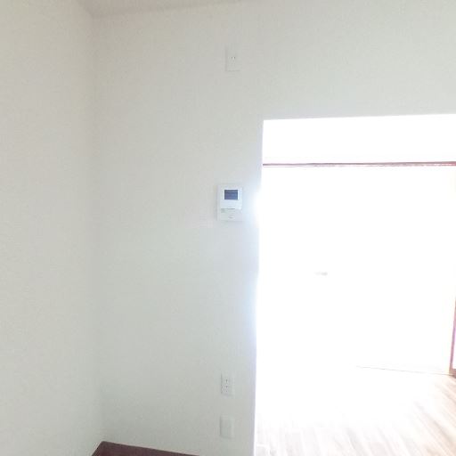 壁面の空きスペース(確度73%):白壁でフラットな面が多く、家具配置や収納を追加しやすい。インターホンやスイッチ類は一部にまとまっている。
