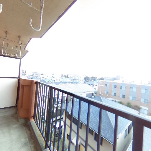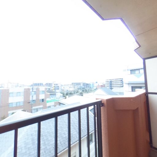 広めのバルコニー(確度80%):奥行きがあり、洗濯物や小物を置くスペースが十分にあるように見える。手すりも高めで安全性がありそう。
