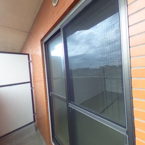 採光(確度82%):大きめの窓があり自然光が入っている。ガラスは透明でバルコニー手すりが見える。
