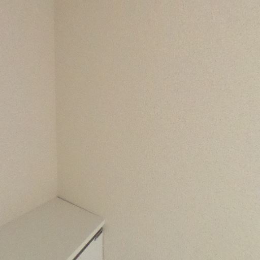 壁面のコンディション(確度70%):白壁は概ねきれいで大きなシミや剥がれは見えない。ピクチャーレールらしき細長い部材がある。