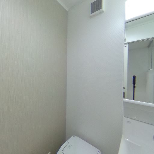 • 換気設備(確度78%):洗面所の上部に換気口がある。