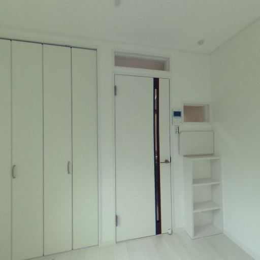 • 収納(確度80%):折れ戸のクローゼットが壁一面にあり、収納量が確保されている。