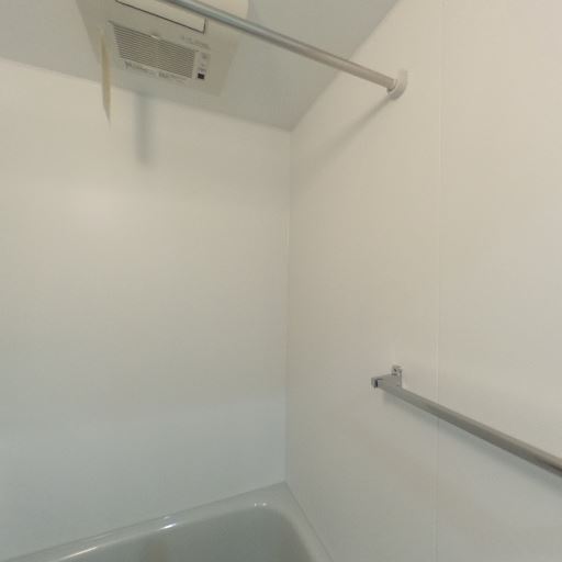 • 浴室乾燥・換気設備あり(確度90%):天井に換気乾燥機と思われるユニットと物干しバーが見える。