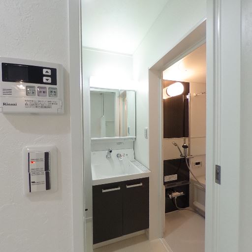 • 独立洗面台と三面鏡収納(確度83%):洗面化粧台があり、上部は三面鏡で収納一体型に見える。