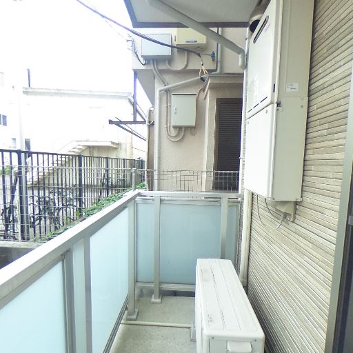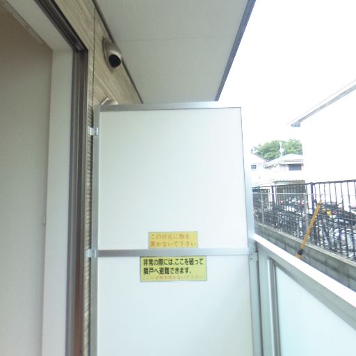 物干し設備の有無(確度55%):袖壁に注意書きパネルはあるが、明確な物干し金物は見当たらない。