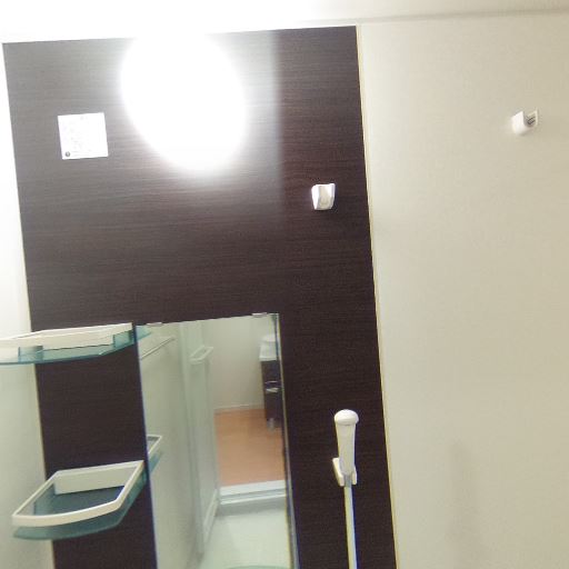 浴室の様子(確度74%):浴室が近接し、鏡・棚・タオルバーが確認できる。