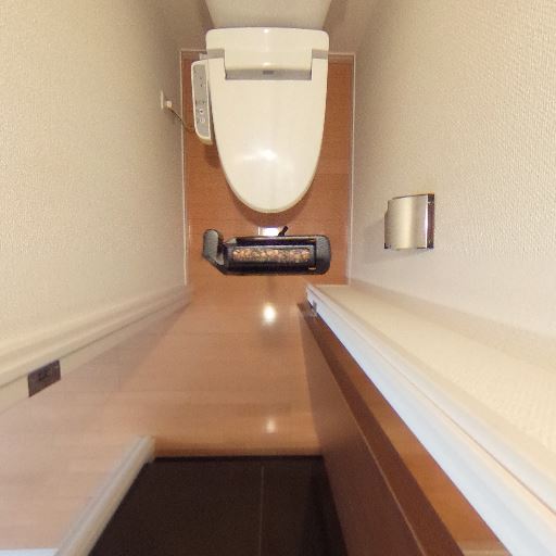 独立したトイレスペース(確度78%):細長い個室トイレで、廊下側から扉で仕切られている。キッチンは別エリアに見える。