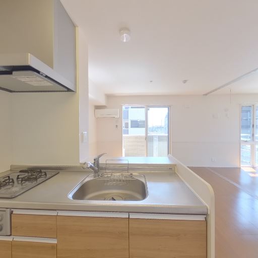 • キッチン設備は比較的新しそう(確度84%):シンク・コンロ・レンジフード・収納面材が全体的にきれいで、使用感は強く見えない。