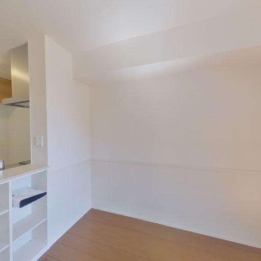 • LDKとして使いやすそうな広さ(確度83%):rightからbackにかけて、リビング空間とキッチン側にまとまった床面積が見え、家具配置の自由度がありそうである。