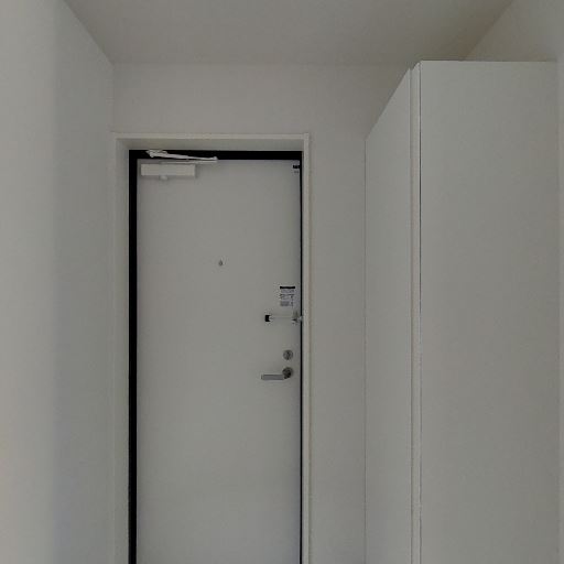 収納・居室レイアウト(確度63%):居室側の壁面はフラットで、クローゼットの扉らしきものが1枚。大きな収納量は期待しにくい。