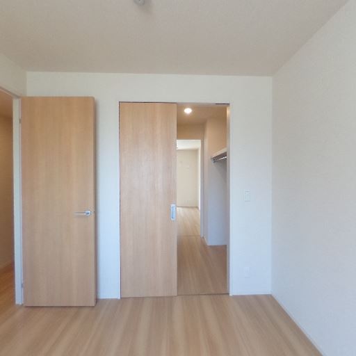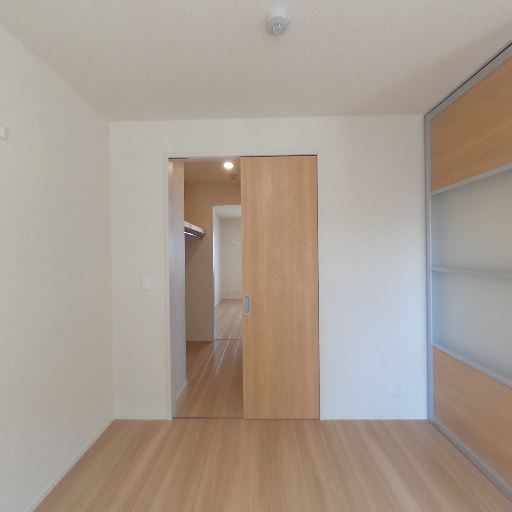 収納または間仕切りの建具が大きい(確度72%):居室側に天井近くまである大きな引き戸状の建具があり、収納量の確保または空間の可変性が期待できる。