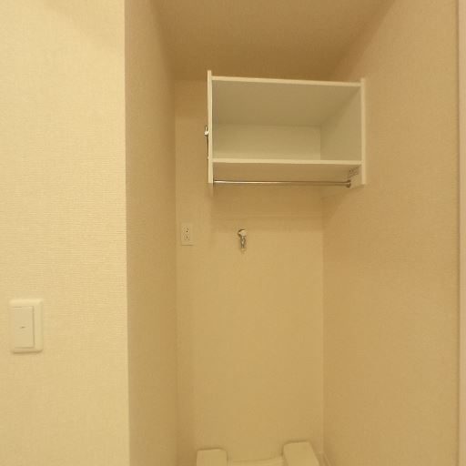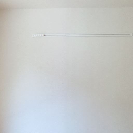 室内物干しまたは壁面レールがある(確度65%):壁面上部に横長の金具・レール状の設備があり、室内物干しや簡易的な壁面活用設備の可能性がある。