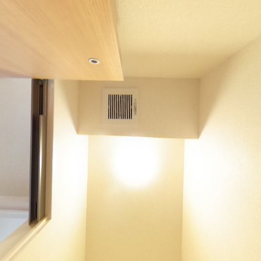 換気設備がある(確度91%):天井側に換気口が見え、トイレ内のこもりやすい湿気やにおいに配慮された造りと判断できる。
