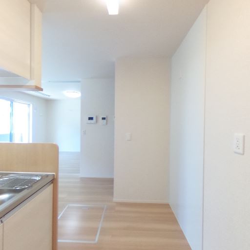 キッチン通路はややコンパクト(確度72%):キッチン脇の通路幅は極端に狭いわけではないが、余裕たっぷりというほどではなく、すれ違いや大型家電の配置には確認が必要そうである。