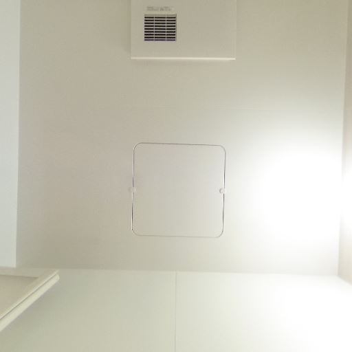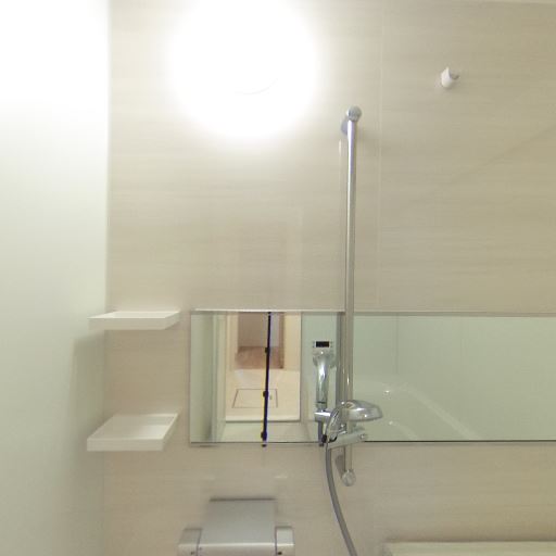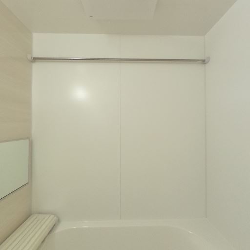 浴室乾燥・換気設備がありそう(確度89%):天井面に換気扇が確認でき、浴室内には物干しバーも見えるため、浴室乾燥や換気機能付きの設備である可能性が高い。
