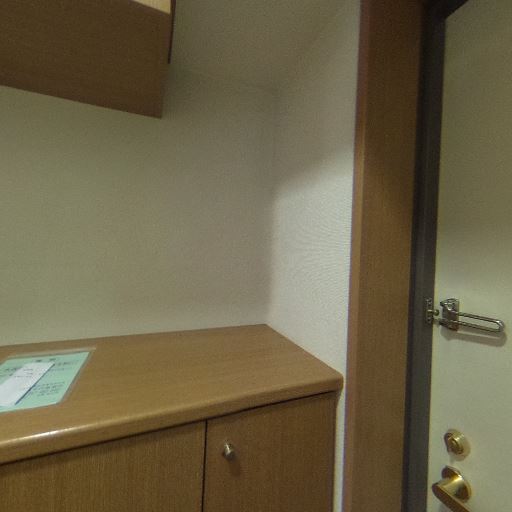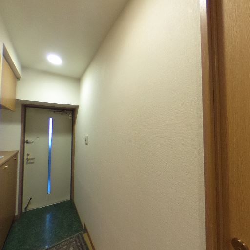 • 採光・明るさ(確度80%):天井ダウンライトで十分に明るく、玄関ドアの縦スリットからも自然光が入る。