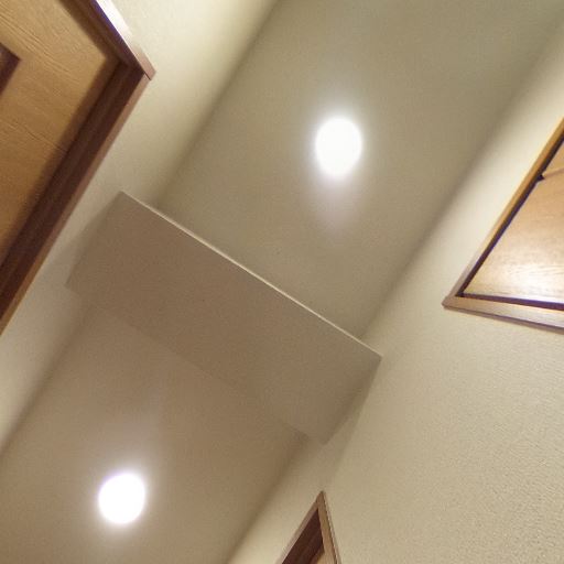 • 照明計画(確度78%):ダウンライトが複数配置され、廊下全体が明るい。自然光は少なそう。