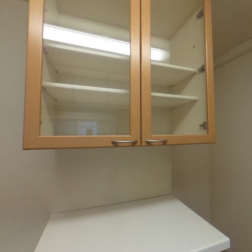 • 収納の充実(確度88%):吊戸棚やガラス扉の食器棚、シンク下収納など複数の収納が確認できる。
