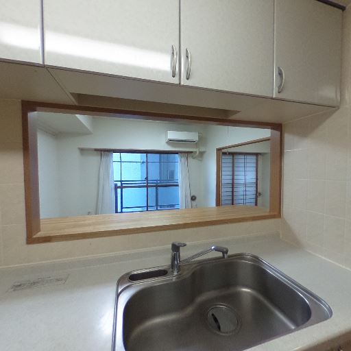 • 対面式キッチンの開口(確度90%):シンク前に大きな開口があり、リビング側が見渡せる。カウンターも設置されている。