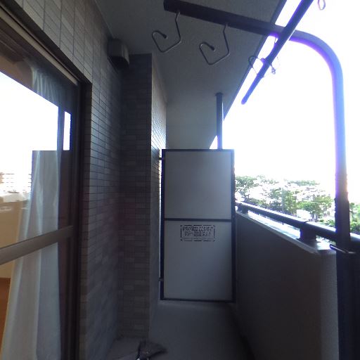 • バルコニーの広さと設備(確度82%):横に長いバルコニーで、室外機が置かれても通行スペースが確保されている。物干し金具も天井から設置済み。