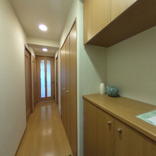 • 廊下の奥行きと動線(確度78%):一直線の細長い廊下で、複数のドアが並ぶ。幅はややタイトだが見通しは良い。