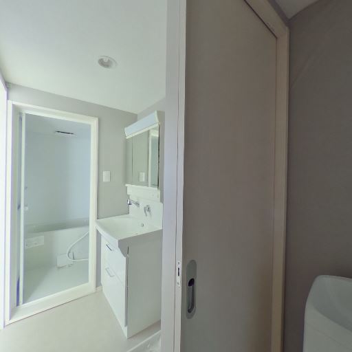 • 独立洗面台と浴室が隣接(確度86%):洗面化粧台と鏡収納があり、その奥に浴室が続く配置。動線が短く使い勝手が良さそう。