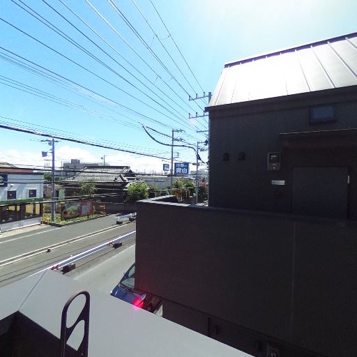 • バルコニーからの眺望と開放感(確度78%):前面が道路で視界が開けており、空も広く見える。隣接建物はあるが完全には塞がれていない。