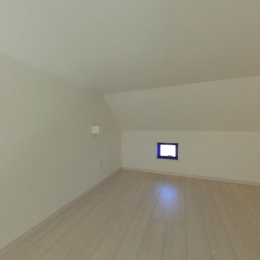 • ロフト空間である可能性(確度90%):手すりのある開口部とはしごが見え、下階に吹き抜けている。天井が低めで勾配天井も確認できる。
