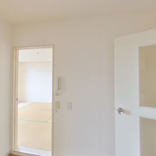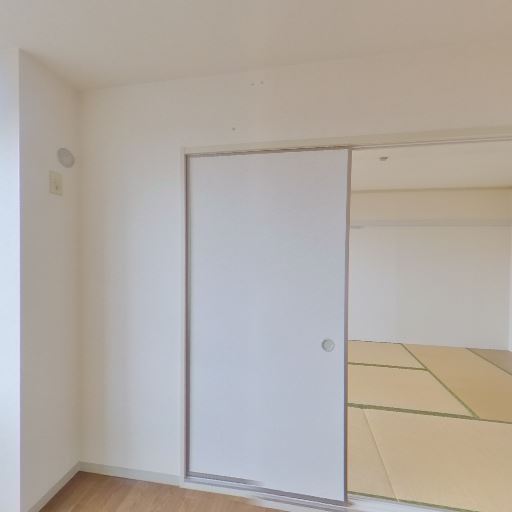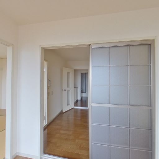 和室への動線(確度73%):引き戸の先に畳敷きの和室が続いており続き間になっている。