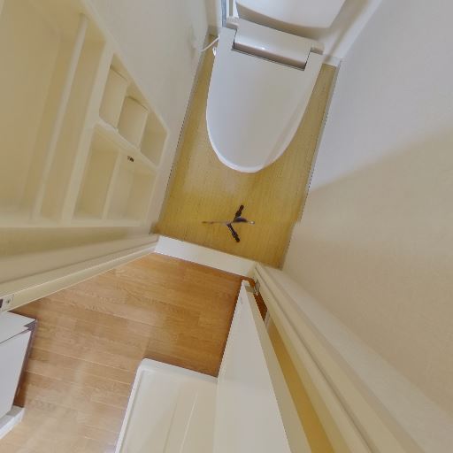 手洗い設備の有無(確度50%):タンク上に手洗い付きタイプではないように見える(独立洗面台が隣室にある)。