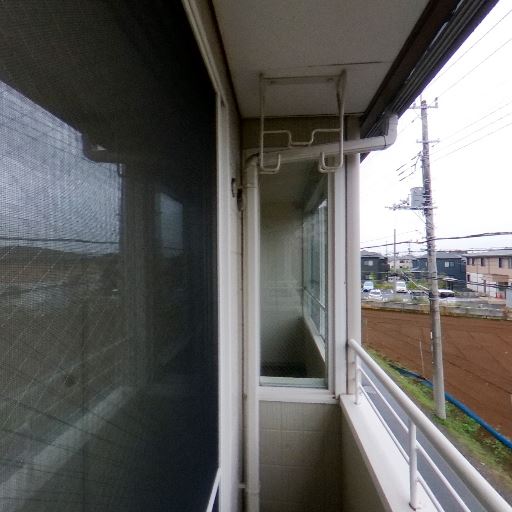 物干し金物あり(確度86%):バルコニー天井と壁に物干し用金具が取り付けられている。