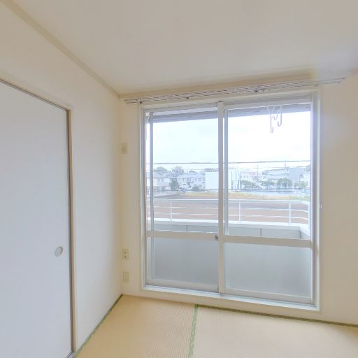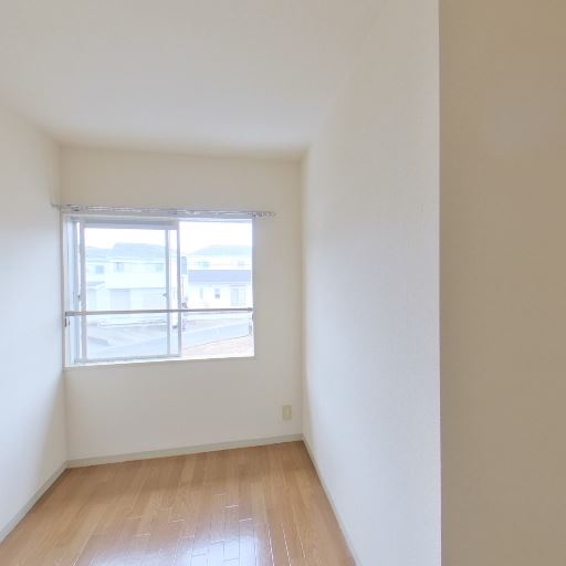 二面採光の明るい個室(確度87%):大きめの掃き出し窓とコーナー窓で室内が明るい。外の眺望も抜けている。