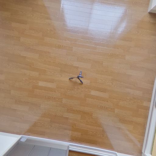 床の状態(確度72%):フローリングは光沢があり大きな傷や汚れは見当たらない。