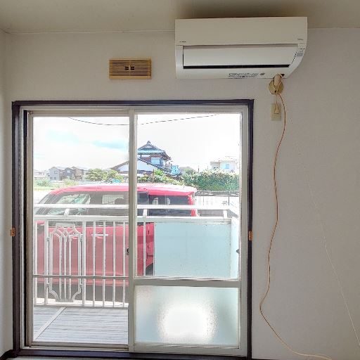 • エアコン設置済み(確度81%):居室側に壁掛けエアコンが設置されている。配線が露出しているが動作環境はありそう。