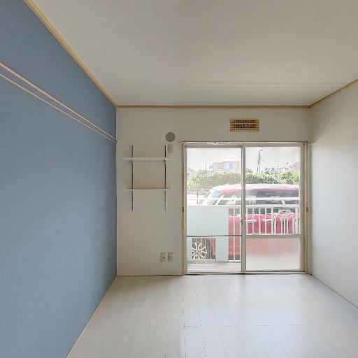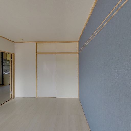 • アクセントクロス(確度78%):一面がブルー系のアクセントクロスで、ほかの壁は白系。