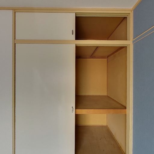 • 押入れ型の収納(確度86%):引き戸と天袋付きの収納があり、内部は上下2段で奥行きもある。